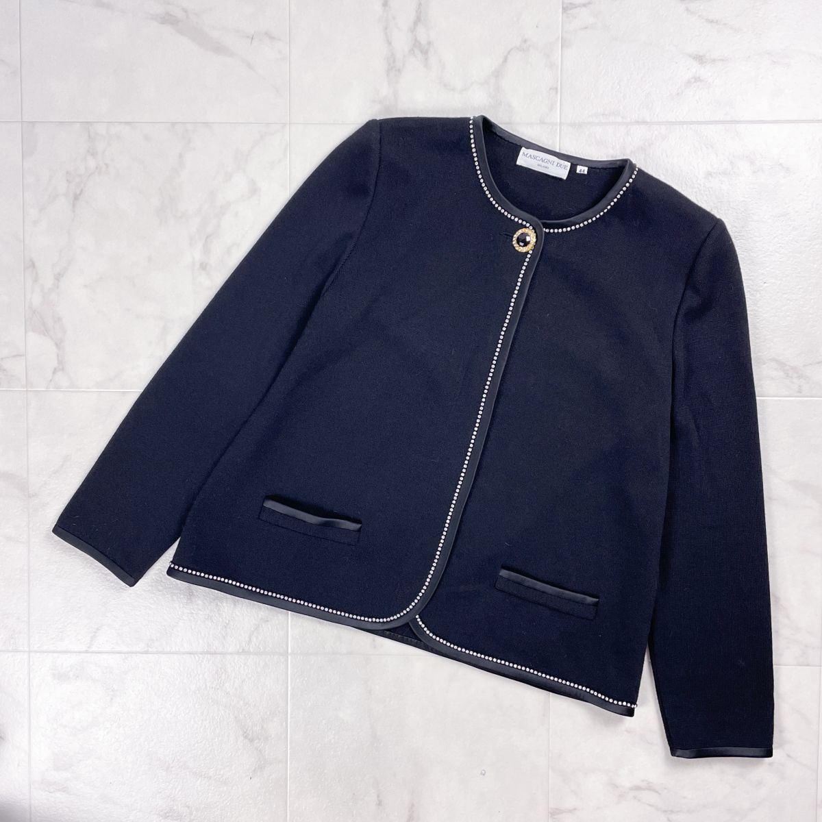 > 美品 MASCAGNI DUE MILANO ビジュー付ニットジャケット 長袖 カーディガン カシミヤシルク ウール レディース 黒 ブラック サイズ44*GD385