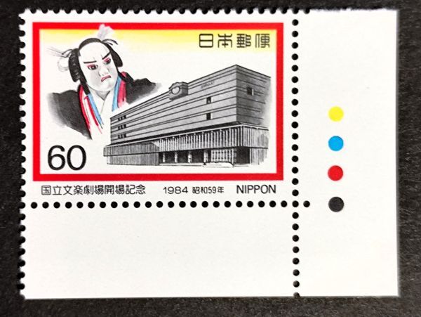 > [25091124]【国立文楽劇場開場記念】単片 CMカラーマーク付「国立文楽劇場と文楽人形」60円 1984年発行 美品
