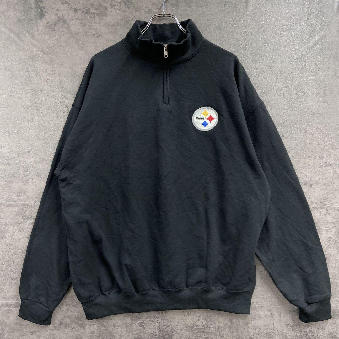 - NFL スティーラーズ 刺繍ロゴ ハーフジップ スウェット 黒 XL【5689】