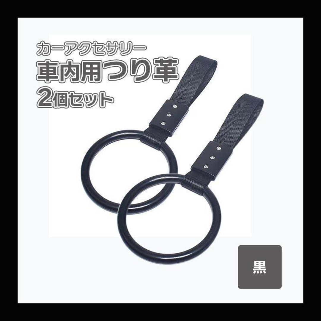 - ブラック つり革 吊り輪 2個セット 電車 車 車内用 丸形 アクセサリー 飾り 乗降補助 車内アクセサリー サポート 乗降 補助