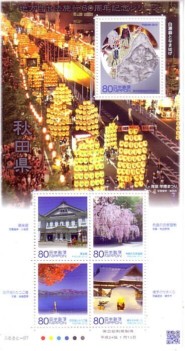 - 「地方自治体法施行60周年記念シリーズ 秋田県」の記念切手です
