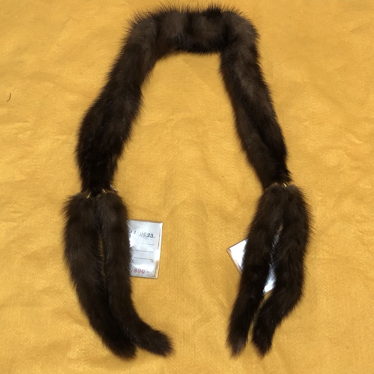 - 未使用保管品 ミンク 襟巻き マフラーストール ファーティペット ブラウン系 フリンジ付き タグ有り