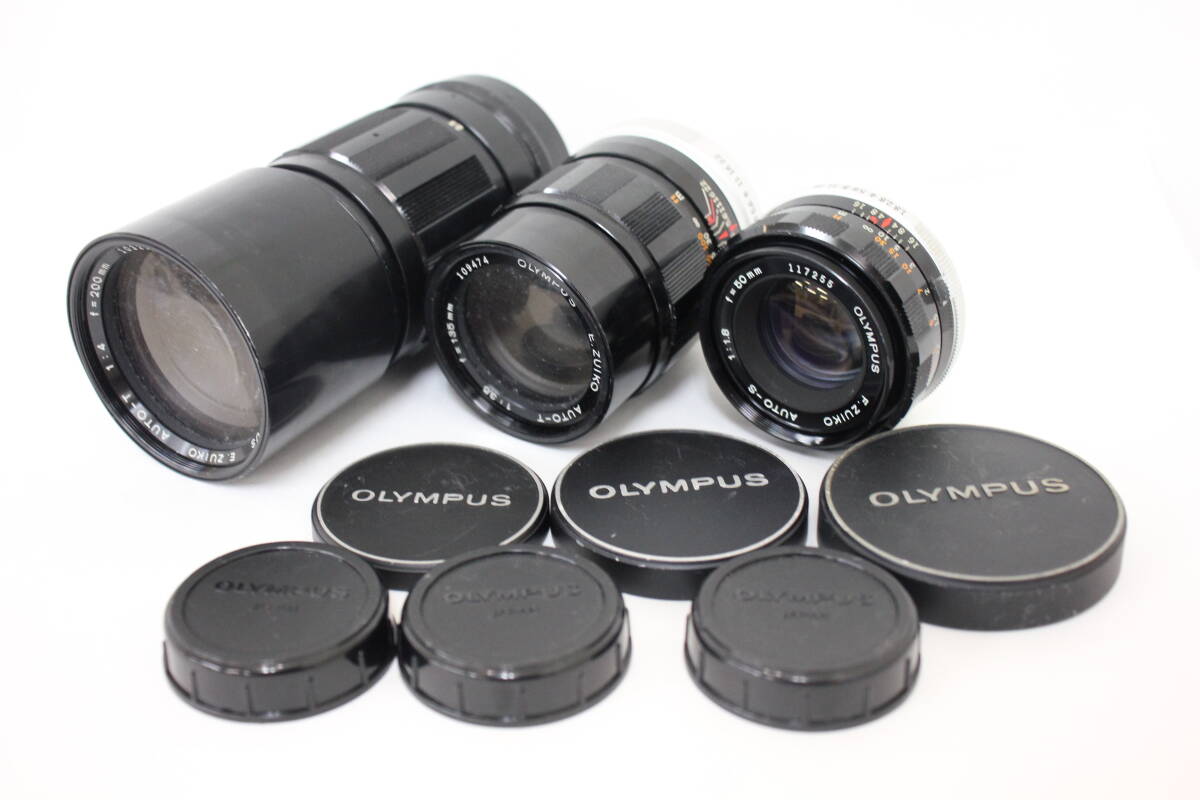 - 【訳あり品】 【3点まとめ】 Olympus F.ZUIKO AUTO-S 50mm F1.8 E.ZUIKO AUTO-T 135mm F3.5 200mm F4 前後キャップ付き レンズ e2935