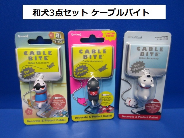 - 和犬3点セット DREAMS ドリームズ ケーブルバイト 1.シバイヌブラック 2.コマイヌ 犬 3.ソフトバンクお父さん犬 ★