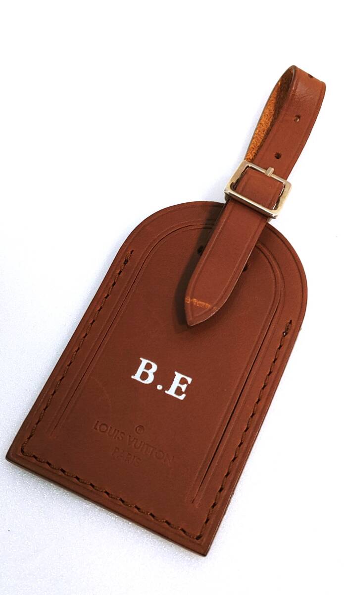 - 美品ルイヴィトンLOUIS VUITTONブラウンレザーネームタグ「B・E」イニシャル入り