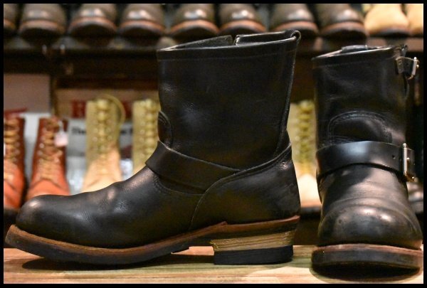 > 【9D 良品 10年】レッドウィング 2976 ショート エンジニア 黒 ブラッククローム スチールトゥ プルオン ブーツ redwing HOPESMORE