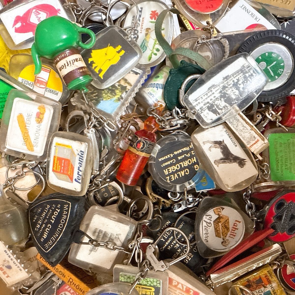 - P605 100個 フレンチキーホルダー フランス ヴィンテージ ビンテージ アンティーク 大量 まとめ まとめ売り 処分 雑貨 ブルボン 卸売 小物