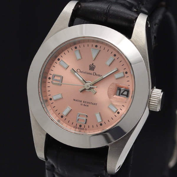 - 稼働 良品 クリスチャンドマーニ CD-6502 QZ デイト ピンク文字盤 レディース腕時計 2000000 NSK INK
