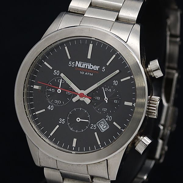 - 稼動 良品 スポーツグラフィック ナンバー5 QZ N01-0002 クロノグラフ ラウンド デイト 黒文字盤 メンズ腕時計 INB 2000000 NSK