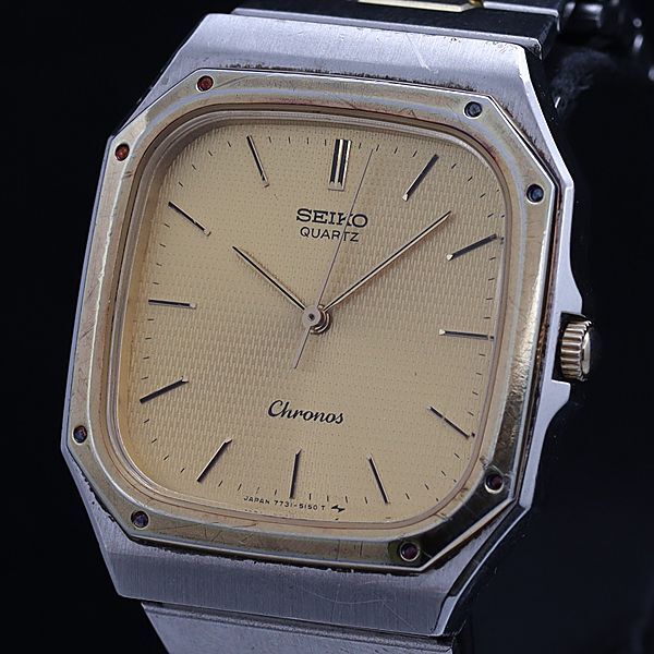 - セイコー クロノス 7731-5130 QZ ゴールド文字盤 スクエア メンズ腕時計 OSW 2000000 NSK
