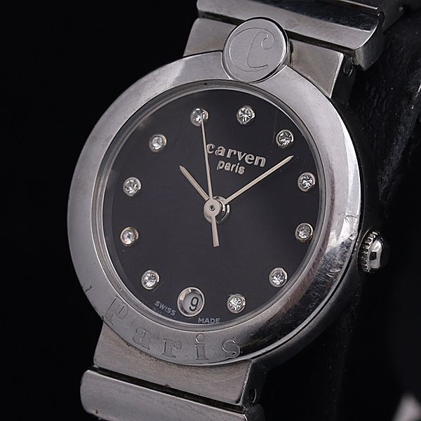 - 稼働 良品 カルバン 28-122S QZ 黒文字盤 デイト ラウンド レディース腕時計 OSW 2000000 NSK