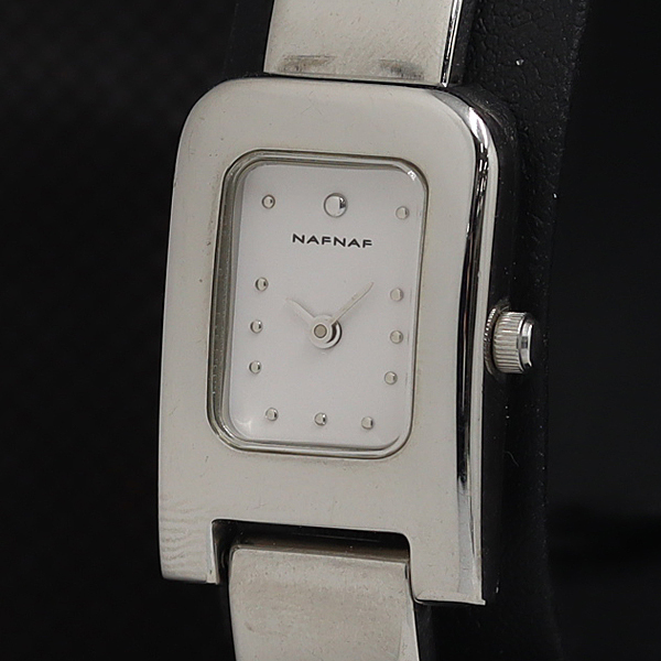 - 稼動 良品 NAFNAF バングルウォッチ QZ スクエア 白文字盤 メンズ腕時計 AOY 2000000 NSK