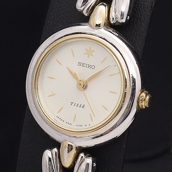 - 稼働 良品 セイコー QZ 4N21-0740 ティセ シルバー文字盤 ラウンド レディース腕時計 NKG