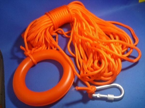 - 小型ボートに便利なロープ・ひも、10m+金具+投げ浮き輪2馬力ボート,ゴムボートに積載で安心、曳航や救助、固定・アンカーロープなどに