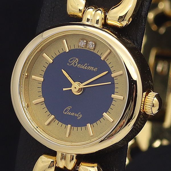- ベスタイム QZ 紺×ゴールド文字盤 石付 ラウンド レディース腕時計 2550000NKG