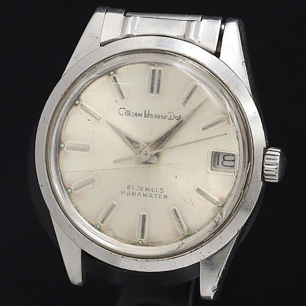 > 稼働 シチズン ホーマーデイト 手巻き シルバー文字盤 デイト 21石 4-180615Y メンズ腕時計 OGH 2000000