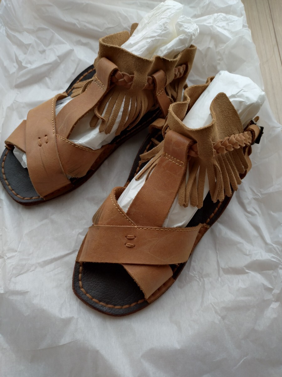 - フリンジ レザーサンダル 24.5 ネストローブ ナチュラル