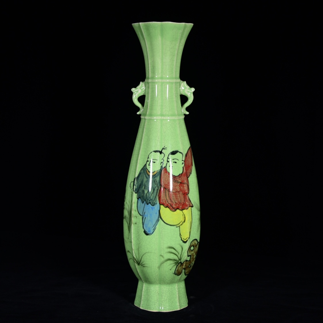 > 多宝閣 ■ 209079 中国磁器 中国骨董【窯で彩色されたアンフォラ】工芸品 施釉陶 陶芸 置物 收藏品 孤品