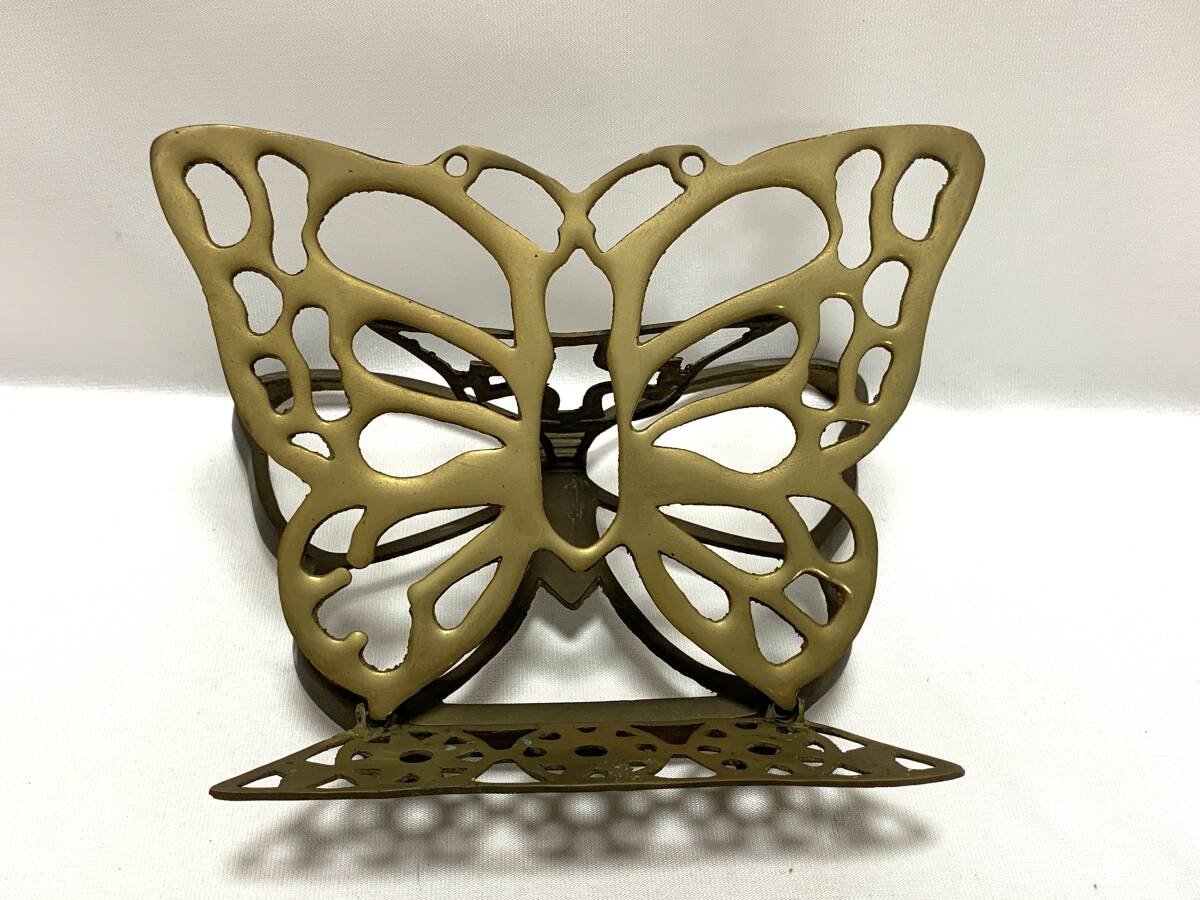 - U657 蝶々モチーフ アンティーク 真鍮製 バタフライ 譜面台 オブジェ アート 飾り 装飾 置物 重さ700g 金属 ウェルカムボード ヴィンテージ