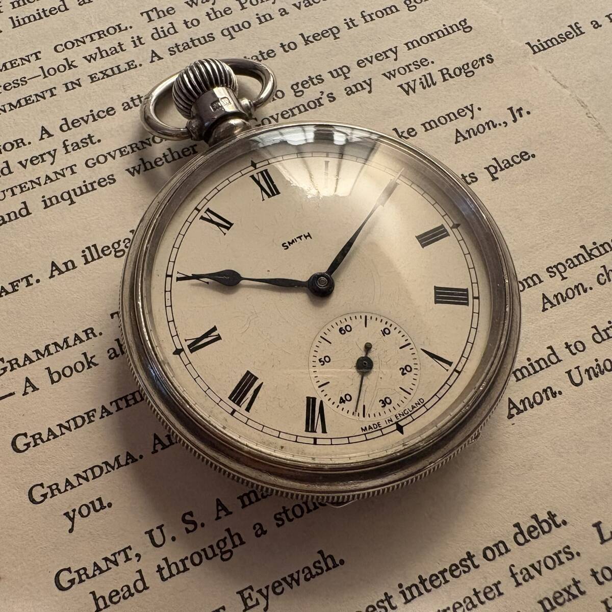 - 英国 1943年 SMITHS スミス 銀無垢 懐中時計 整備済品 アンティークウォッチ イギリス アンティーク ヴィンテージ シルバー デニソンケース