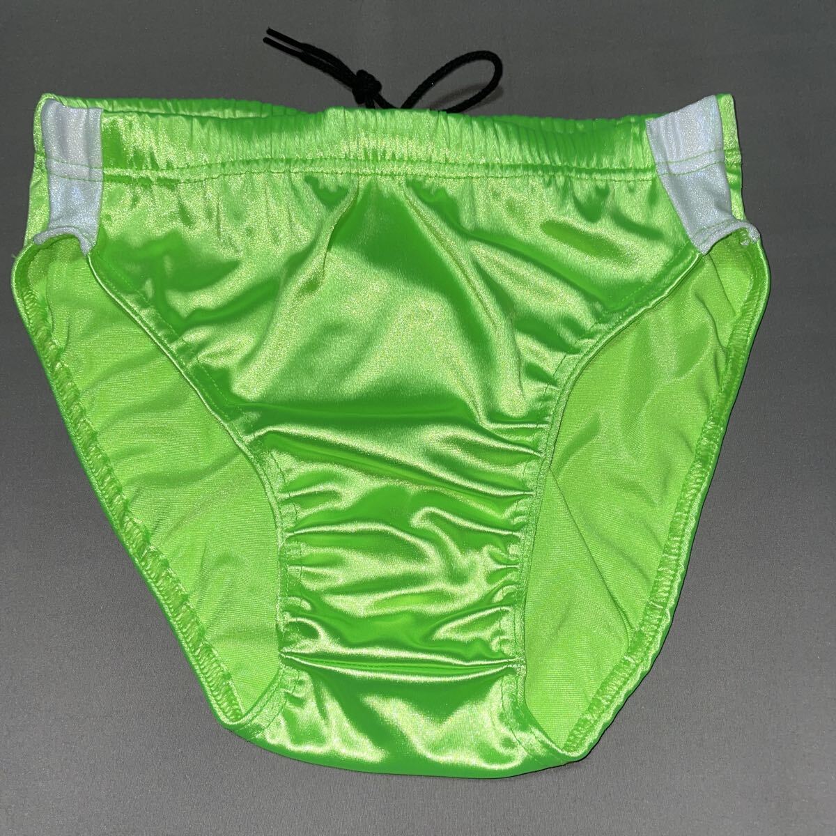 - レーシングブルマ 黄緑色×白 Lサイズ 陸上競技 伸縮生地 ナイロン93% ポリウレタン7% 光沢厚手ニット生地