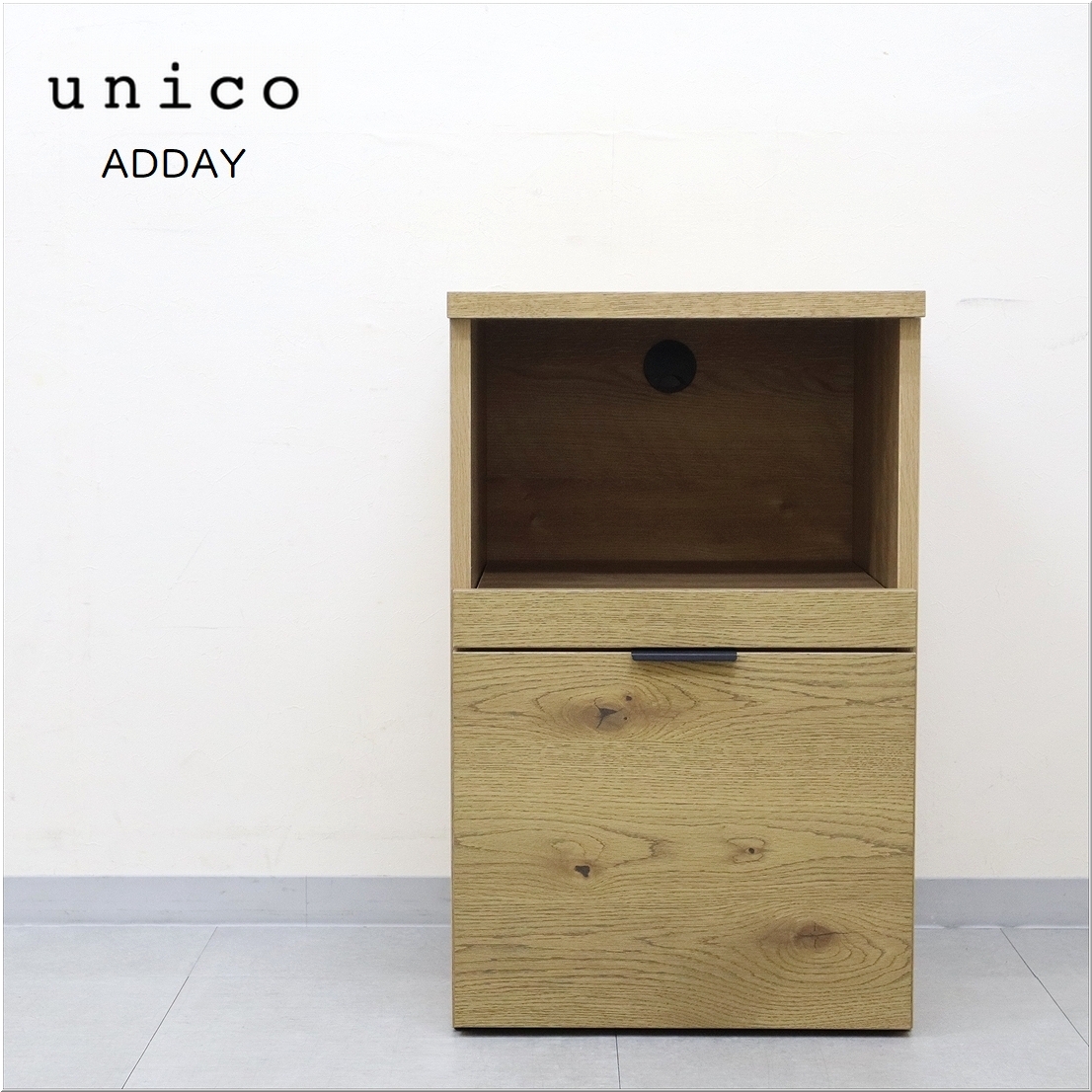 - ◆極美品 unico ウニコ ADDAY アディ デスクチェスト オープン シンプル 木製 幅45cm オーク材 北欧 モダン サイドチェスト キャビネット