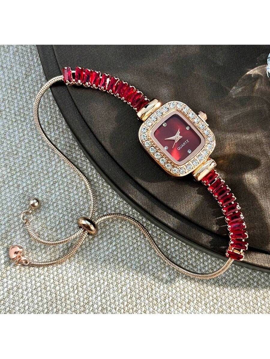- 腕時計 レディース クォーツ 1個 女性用 クリスタルエンベリッシュドフレキシブルブレスレットウォッチ、正方形の合金ケース、ライン