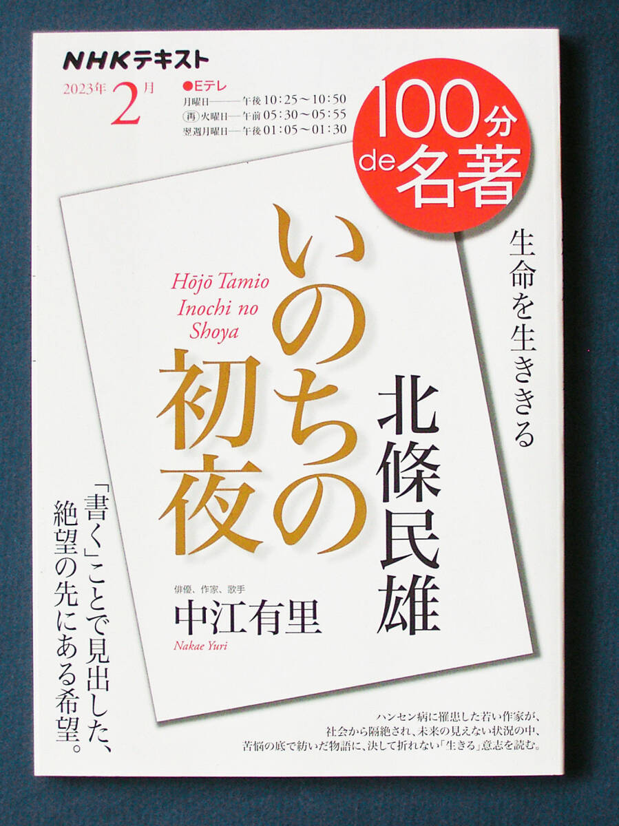 - 100分de名著 「北條民雄;『いのちの初夜』」 ◆中江有里(NHK出版)2023年2月