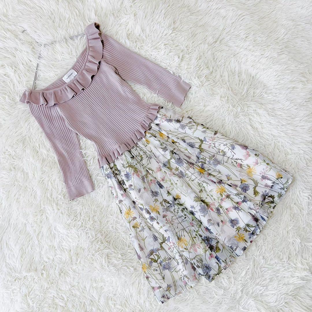 - 《ジルスチュアート》 (M) オフショルドッキングフレアワンピース 花柄 フリル