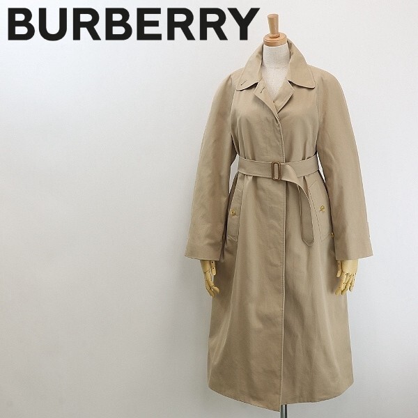 - 【HA87】ヴィンテージ 英国製◆BURBERRYS バーバリー 裏地ノバチェック柄 ベルテッド ステンカラー コート ベージュ
