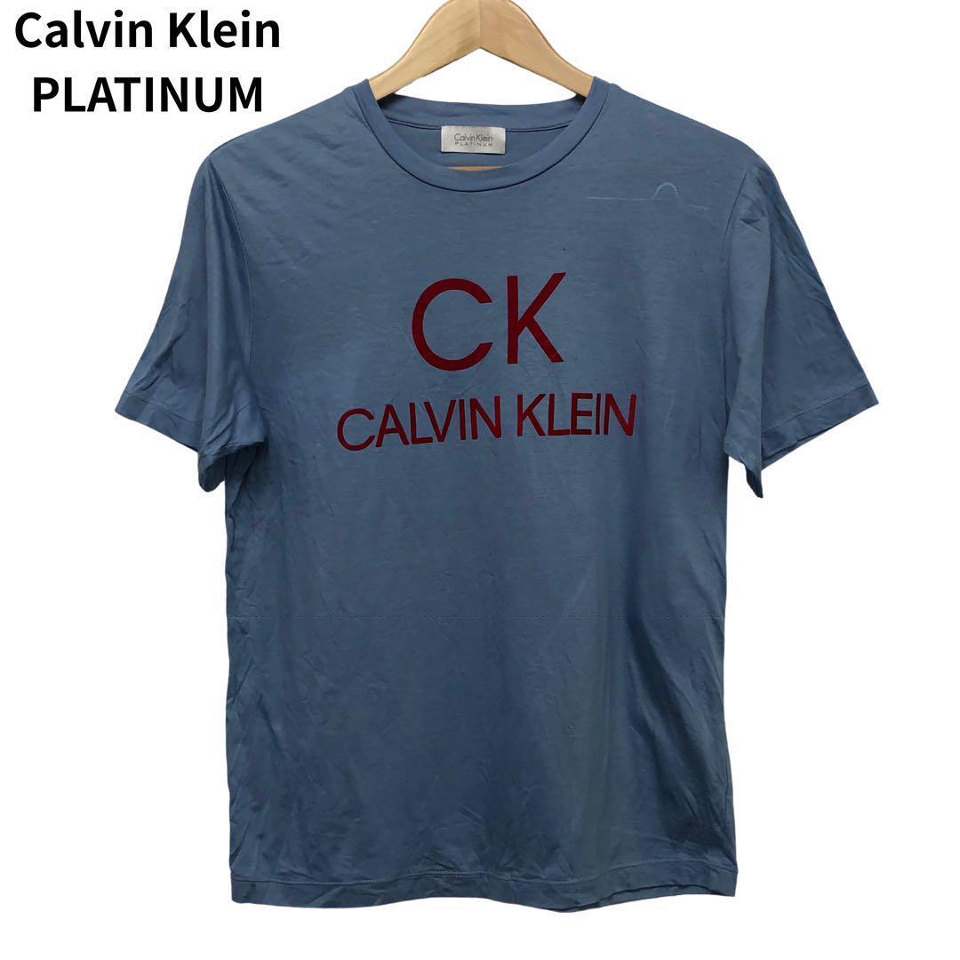 - カルバンクライン Tシャツ 半袖 ブルー デカロゴ プリント 丸首 コットン M