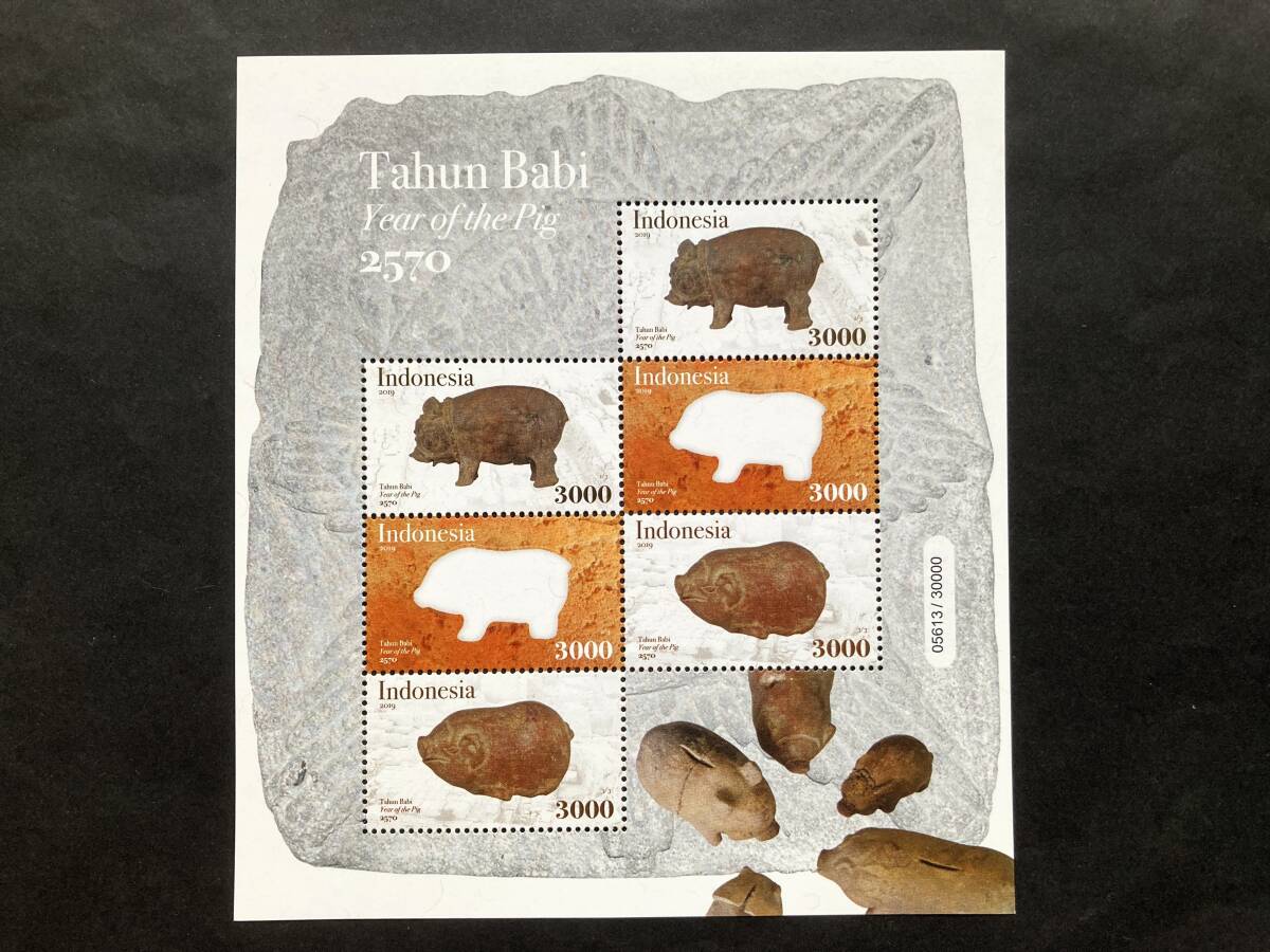 - 外国切手: インドネシア切手 「新年 2019〈亥〉」6面m/s 未使用