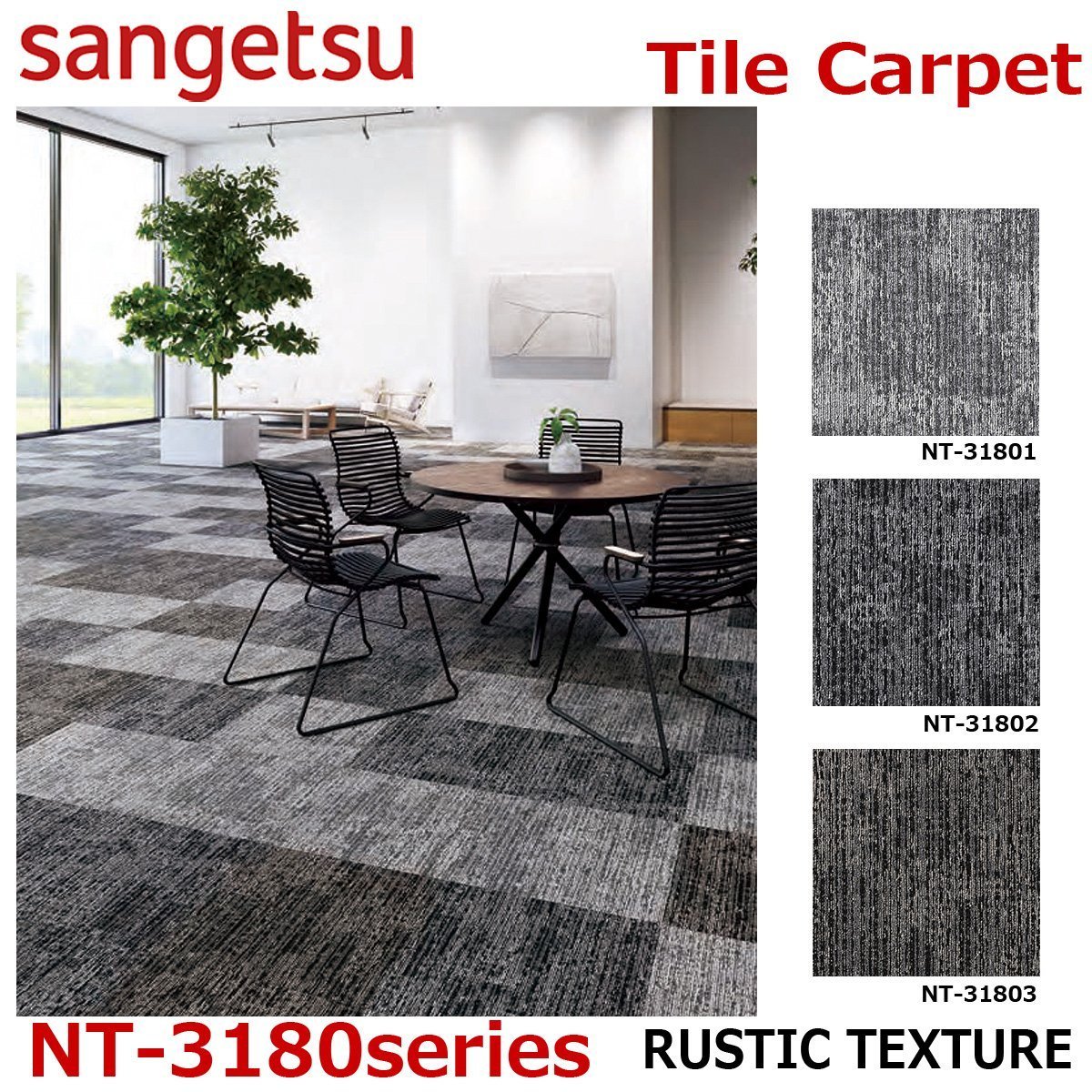 - 【サンゲツ】防炎タイルカーペットNT-3180 ラスティックテクスチャー:50 cm × 50 cm【C】