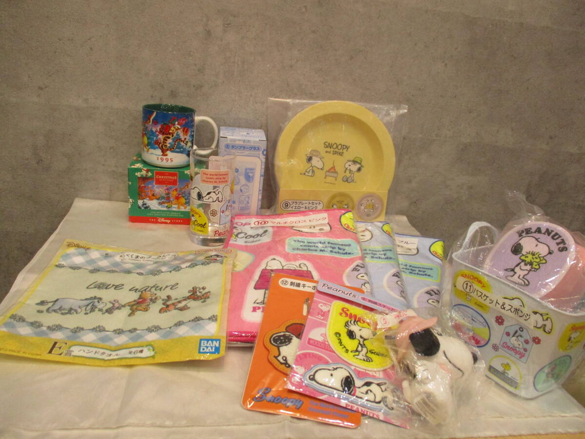 - スヌーピー プーさんグッズ12点 SNOOPY クロス カップ プレート バスケット&スポンジ プーさん マグカップ 保管品 おまとめ12点