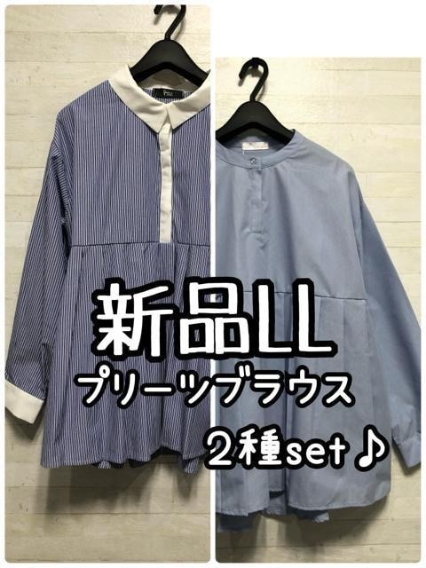 - 新品☆LL♪ブルー系プリーツかわいいブラウスを2種セットで♪長袖☆Q320