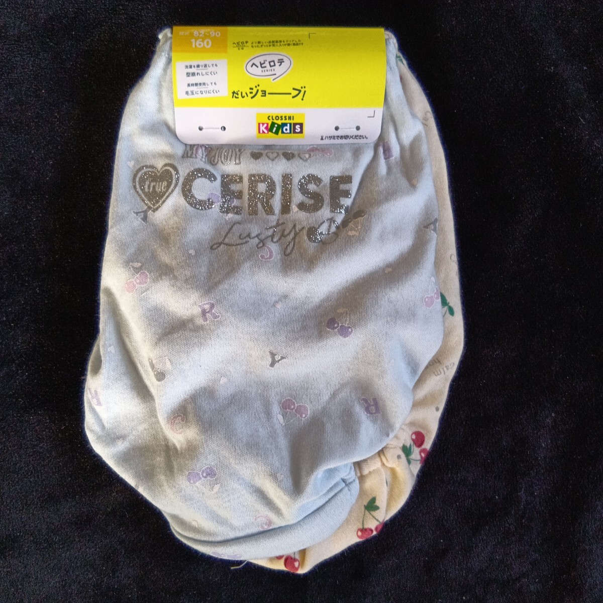 - 女児 ガールズインナー 薄水色地にサクランボ・英字模様&クリーム地に赤さくらんぼ・ハート・英字模様のショーツ 2枚組 160サイズ
