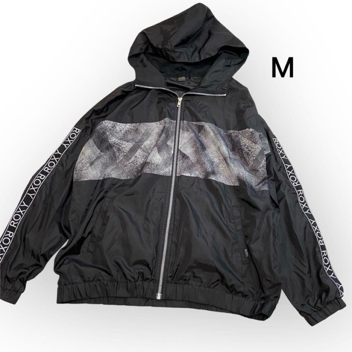 - ROXY ロキシーウインドブレーカー ライトジャケット ブラック 黒 撥水 フード付 レディースM