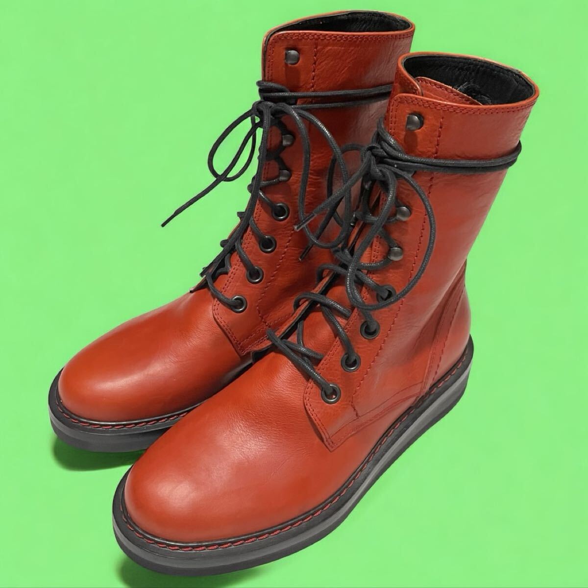 > 新品 アンドゥムルメステール レースアップブーツ 赤茶 ドクターマーチンオマージュ archive Ann Demeulemeester Boots 8ホール 上質レザー