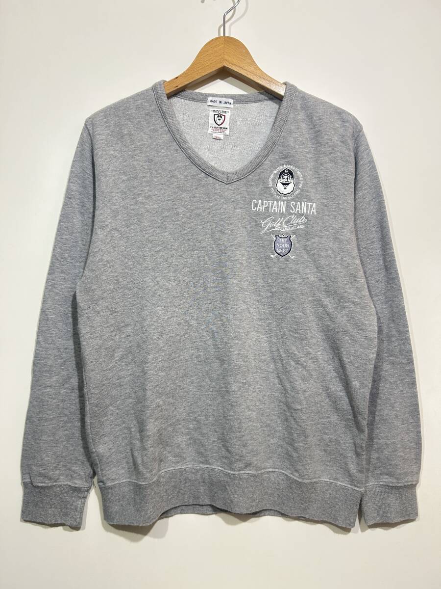 - ★ CAPTAIN SANTA GOLF CLUB Vネック ライトスウェット トレーナー プルオーバー トップス グレー S 刺繍 ジョイマーク 日本製