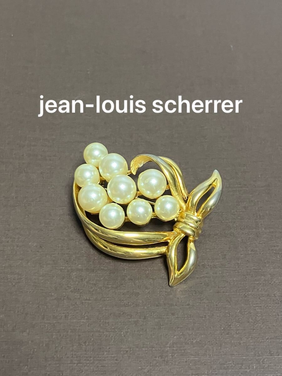 - jean-louis scherrer パール ゴールドリボン ブローチ