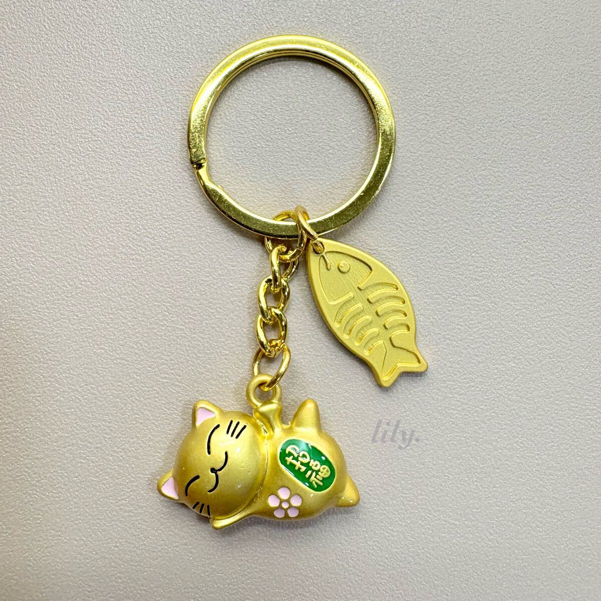 - 【キーホルダー】招福 招き猫 金 ゴールド 金運 にゃんこ