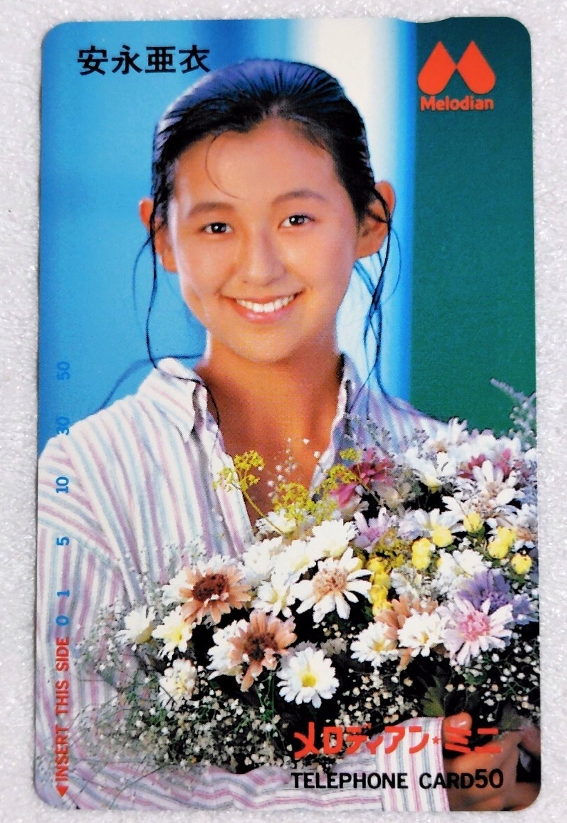- テレカ 未使用 テレカ 50度 安永亜衣 Melodian メロディアン・ミニ 1枚 表面の右側に薄く数字のような物あり