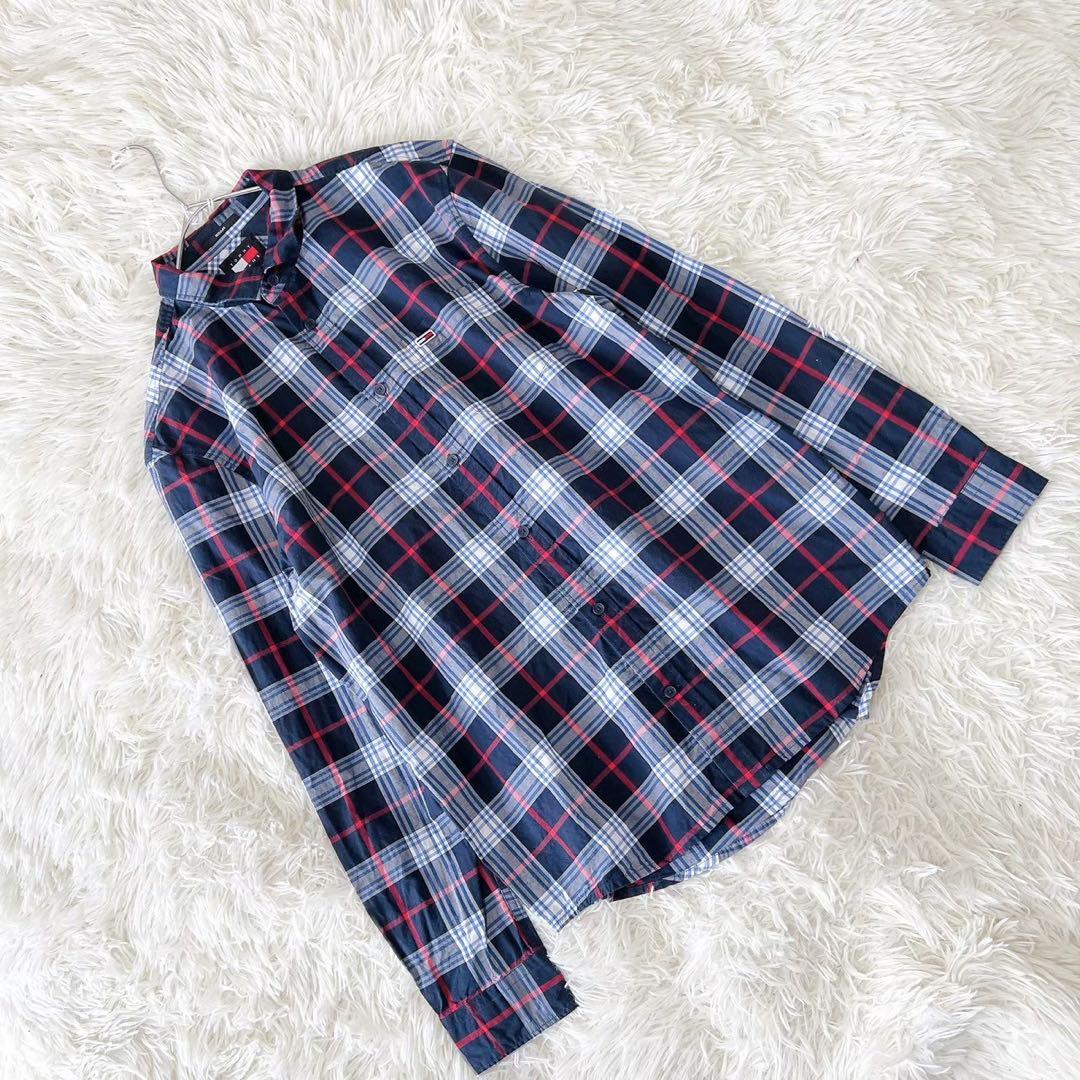 - 《トミージーンズ》 TOMMY JEANS (L) コットンチェックシャツ ロゴボタン アメカジ ラフ
