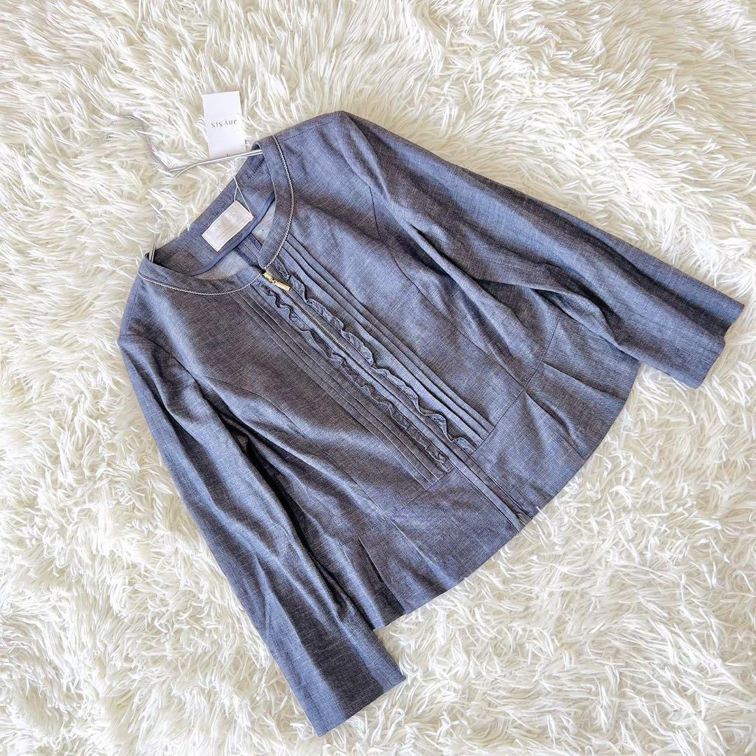 - 《エニィスィス》 any SiS (2) ダンガリーペプラムジャケット ノーカラー ジップアップ