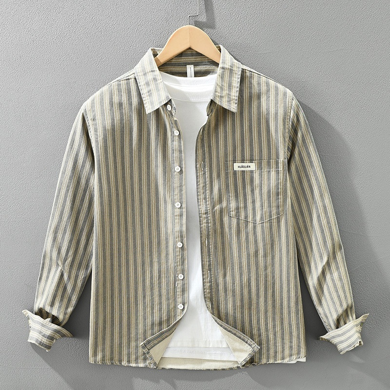 - 長袖シャツ シャツジャケット 新品★メンズ トップス 春秋服 ストライプ ウエスタンシャツ カジュアルシャツ【M7770】グレー M