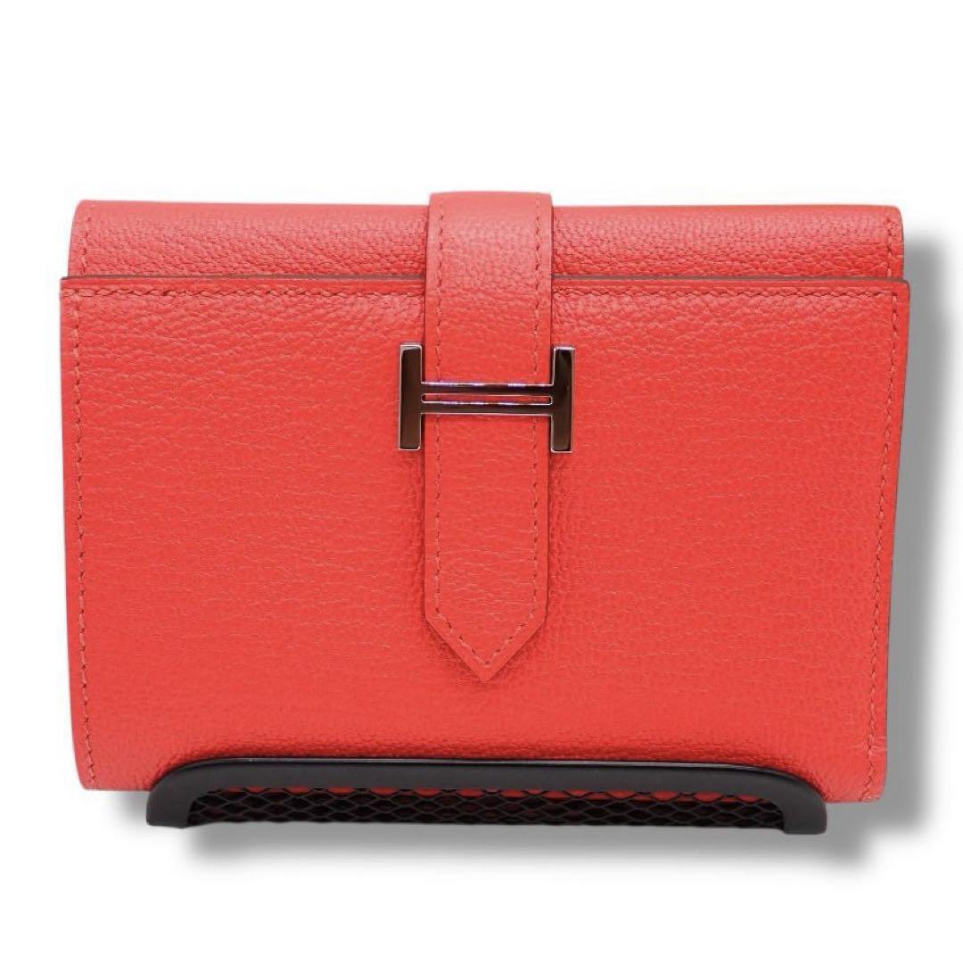 > 未使用 K刻印 エルメス ベアン コンビネ 3つ折り財布 Hermes コンパクトウォレット レッド シェブルミゾル 付属品完備 cy2