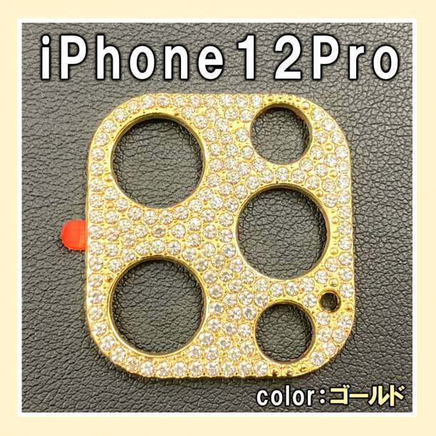 - iPhone12pro カメラ保護フィルム ラインストーン デコ ゴールド S
