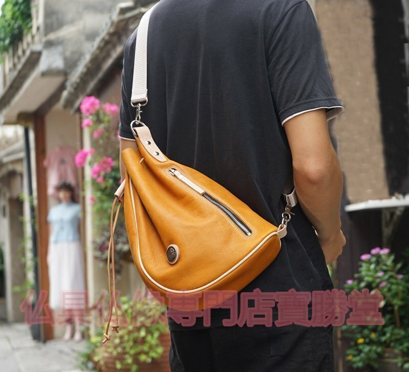 - 【寶勝堂】注目コラボ★メンズバッグ 本革 ボディバッグ ワンショルダーバッグ 斜めがけ 肩掛け 牛革 シュリンクレザー ブラック ロップ型