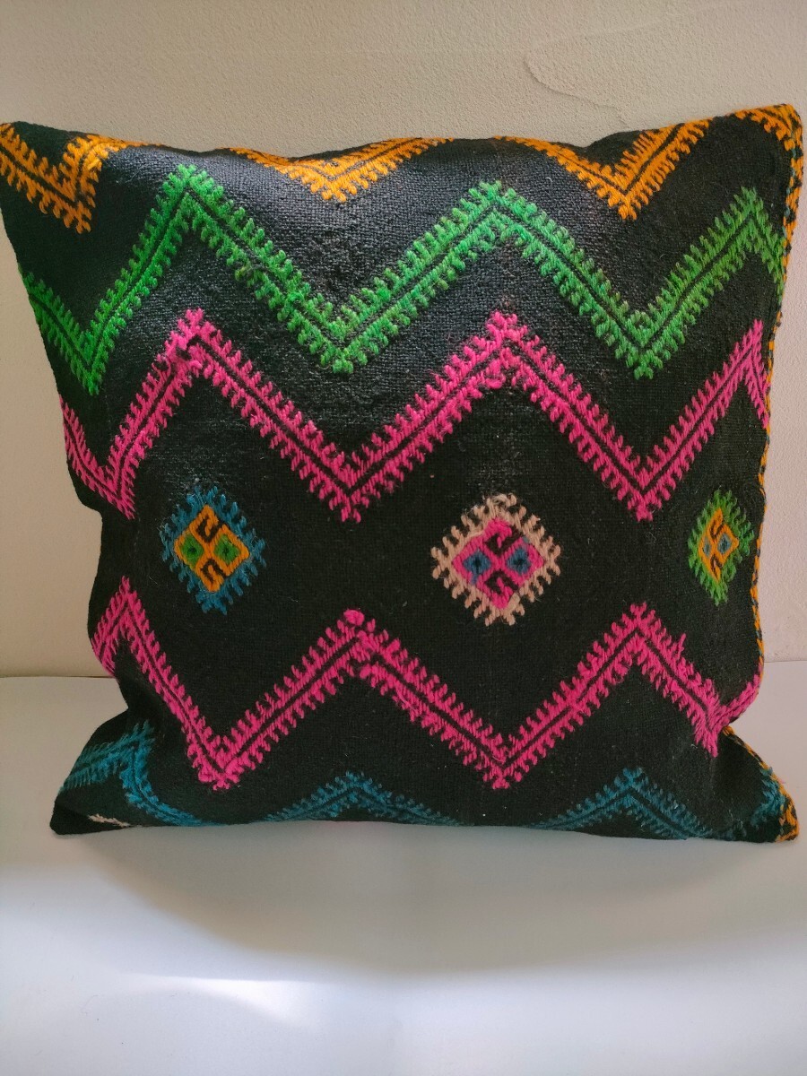 - L13-22 ジジム ブラック 50cm オールドキリム クッションカバー