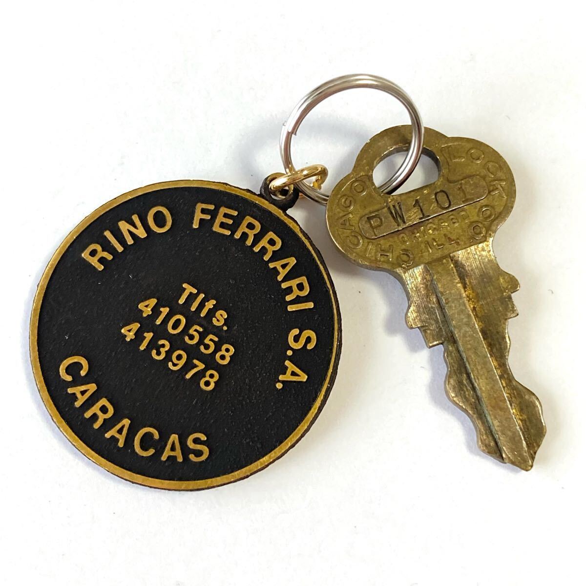 - 238 当時物1960年代アメリカ雑貨企業物旧車ヴィンテージ輸出用エンブレムプレート金属製☆キーホルダー真鍮鍵キーセット カギ 鍵ノベルティ